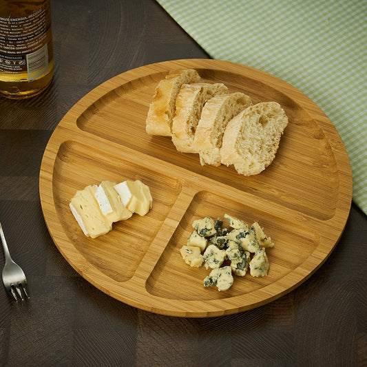 NESTOR II - Petisqueira em Bambu Redonda com 3 Divisórias - 25cm - Ref. 18666M
