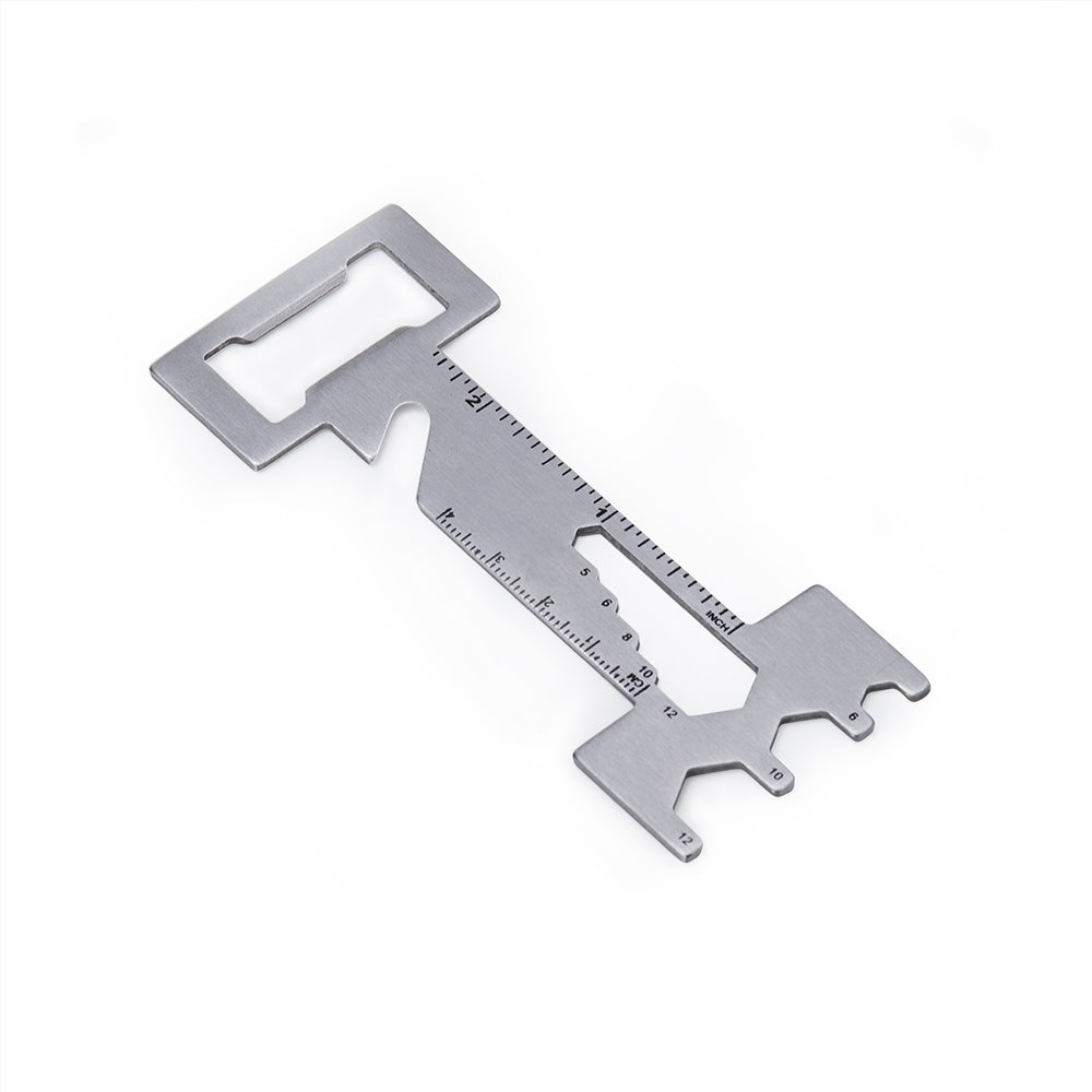 Abridor Multifuncional CARNEIRO ROCHA que oferece réguas em centímetros e polegadas para medições rápidas, cinco chaves de boca, três chaves hexagonais e uma faca de cordão, torna-se a ferramenta ideal para diversas situações do dia a dia.