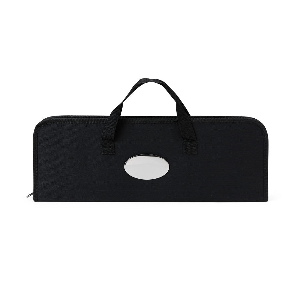 Tudo vem organizado em um estojo de nylon com alças e uma plaquinha metálica personalizável, ideal para deixar seu conjunto ainda mais exclusivo e especial.