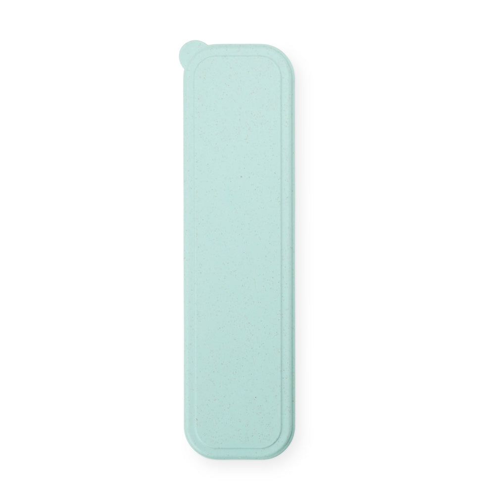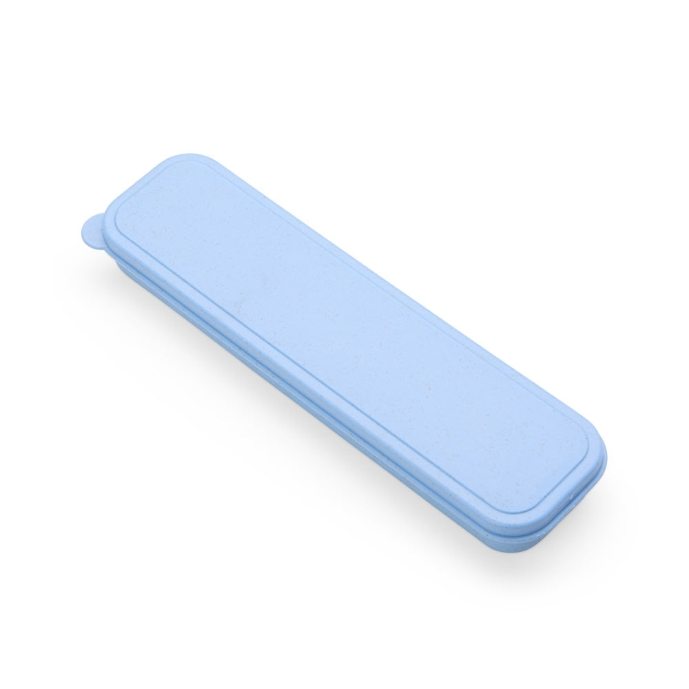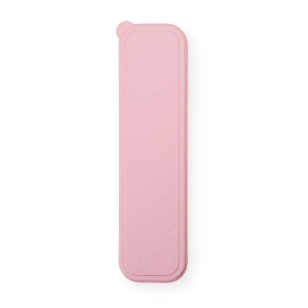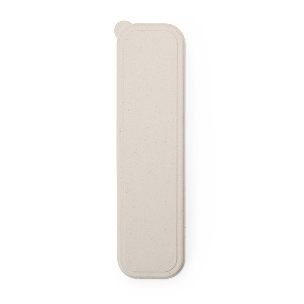 Kit de talheres ESTELA, confeccionado em palha de trigo, promove a redução do uso de descartáveis, pois vem com faca, garfo, colher e estojo protetor, facilitando o transporte e a organização.