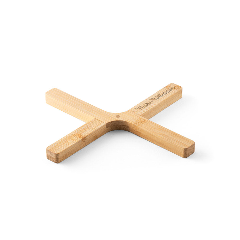 Descanso de panela dobrável SHANDY feito em bambu resistente se destaca pela facilidade de uso e pela possibilidade de economizar espaço quando guardado.